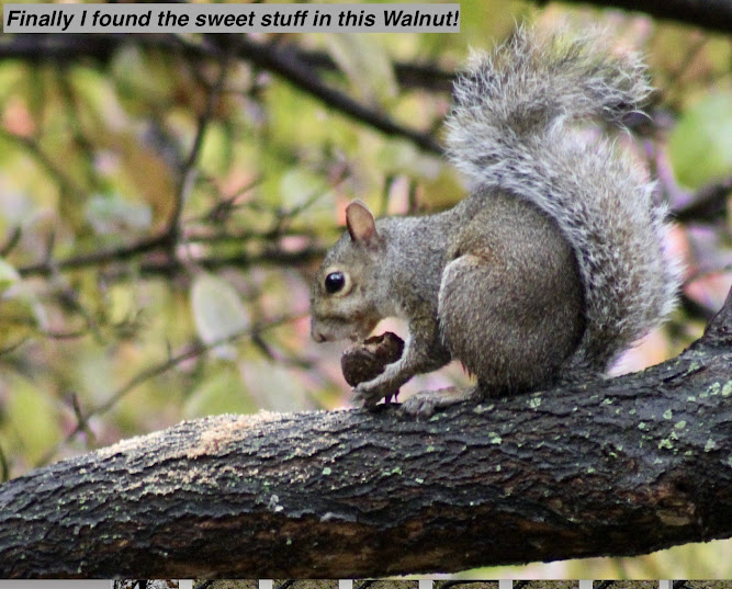 In the next nine photos I added some of the conversations between myself and the squirrels as to what these entertaining animals were doing and what they were telling me about the activities of their day which was warm and sunny.